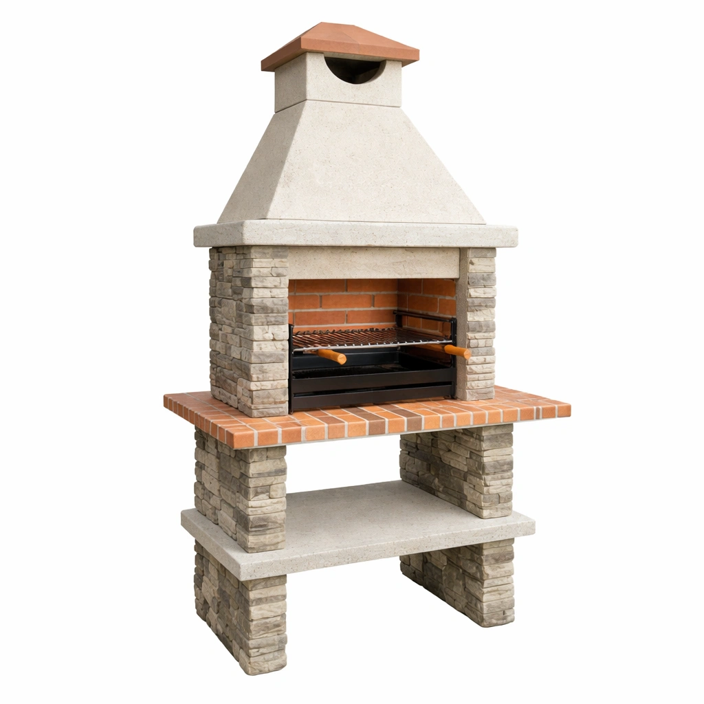 Barbacoa de hormigón para exterior con parrilla de acero inoxidable y ladrillo refractario