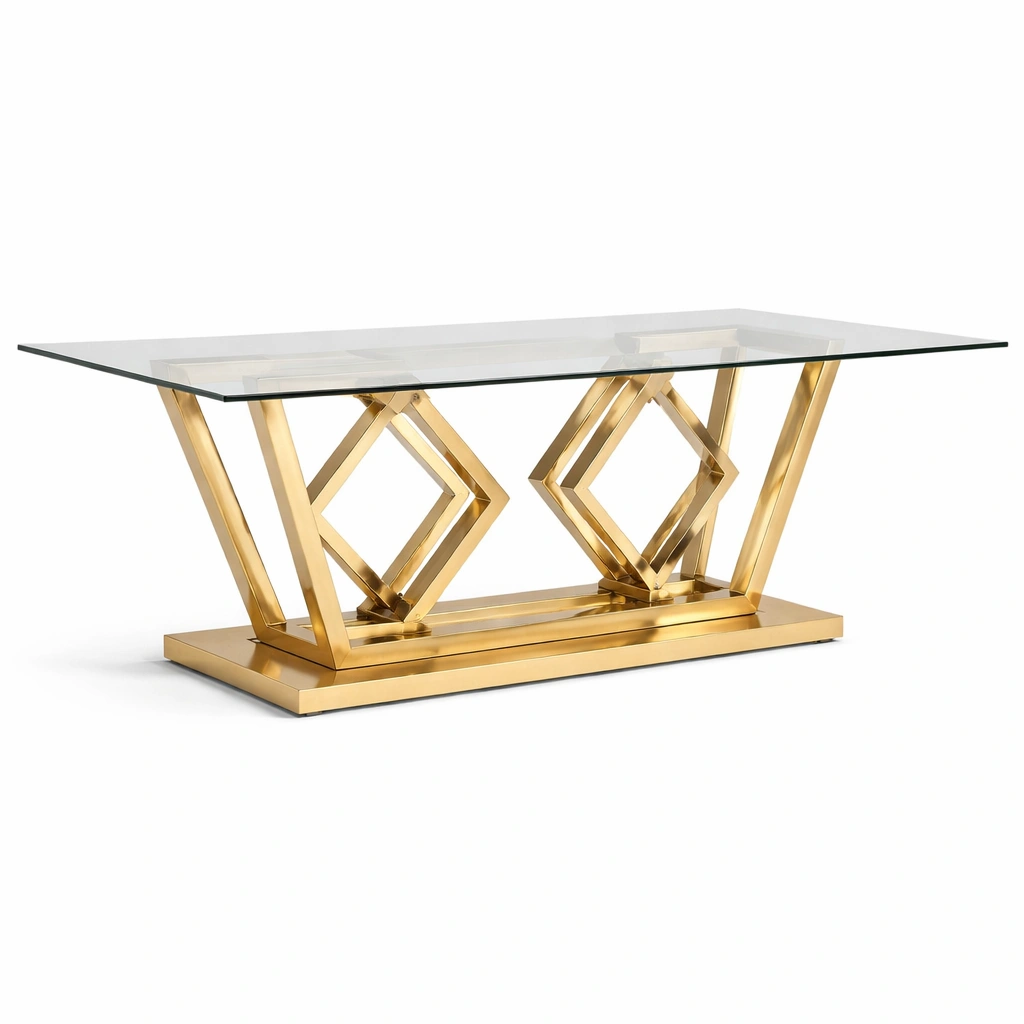 Mesa de vidrio templado y acero dorado