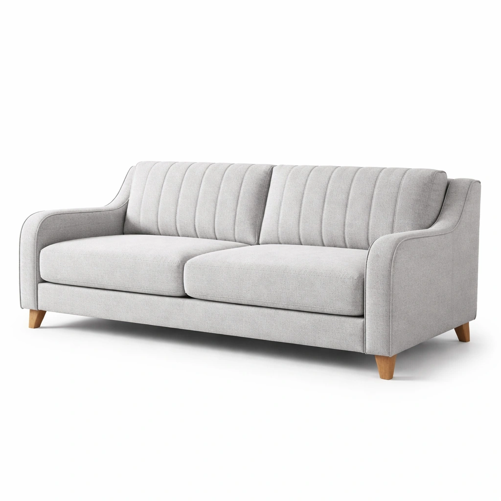 Material: Estructura de madera, tapizado de tela, relleno de espuma de alta densidad.